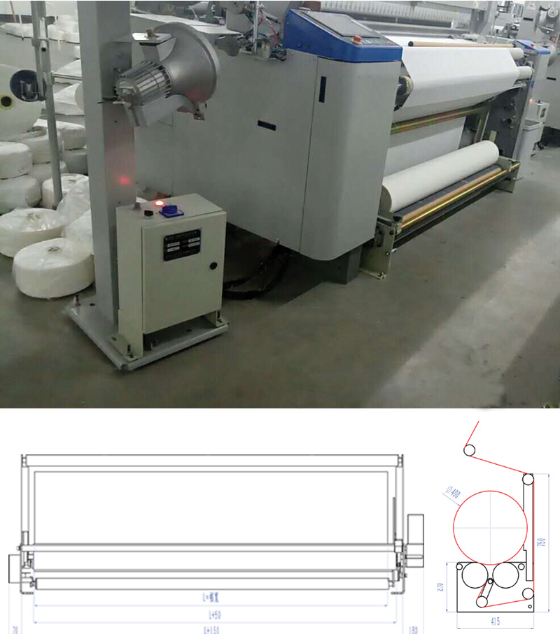 卷布速度與織布機(jī)的速度同步并自動(dòng)跟蹤,操作簡(jiǎn)便,特殊的設(shè)計(jì)性能可實(shí)現(xiàn)較好的卷繞效果。