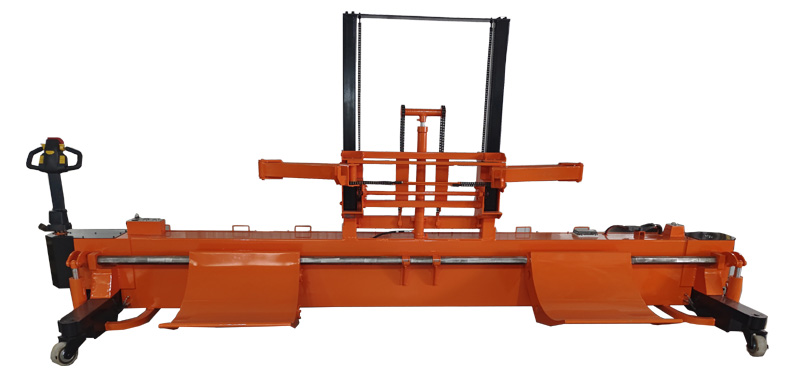 用途:適用于幅寬2800~3900mm各類雙幅織機的帶綜框上軸與運輸。